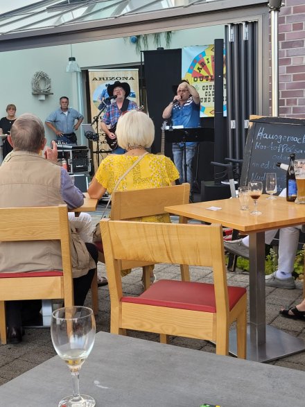 Die Country-Nacht am 13. Juni 2025 im käffchen am steinkreis war ein voller Erfolg – im wahrsten Sinne des Wortes: Die gesamte Brunnen Lounge war bis auf den letzten Platz gefüllt, zusätzliche Stühle mussten aus dem Veranstaltungsraum geholt werden, um allen Gästen einen Platz zu bieten. Und das zurecht – denn mit den Arizona Outlaws stand ein Duo auf der Bühne, das nicht nur musikalisch überzeugte, sondern auch menschlich voll und ganz beim Publikum ankam.